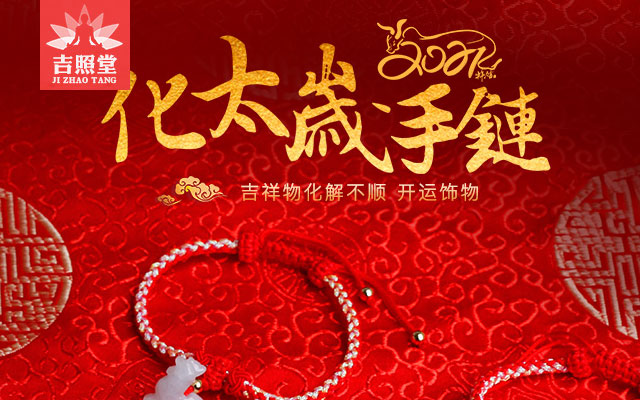 2、化太岁手链:运逢本命年,即出生年地支与流年地支相同,就会产生“伏吟”的状况。伏吟代表着痛苦、破财、忧郁,也主伤害,提醒属兔人要小心防范,最好佩戴吉照堂的化太岁手链将其巧妙化解吉照堂的化太岁手链专属的为犯太岁的生肖打造的,对于运势不好的属相佩戴它可以带来好运,为自己趋吉避凶。